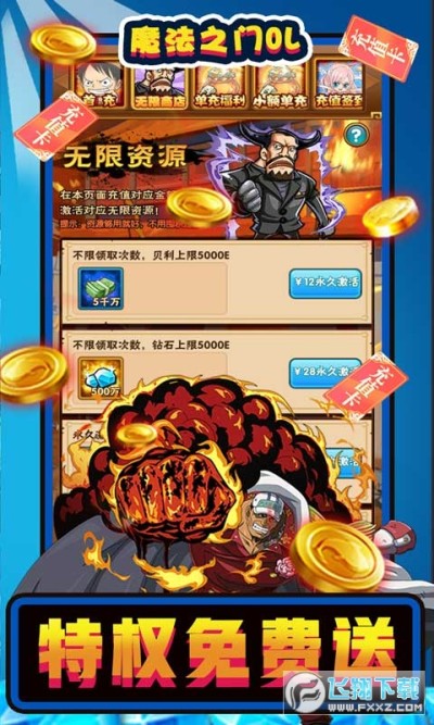 《魔法之门OL-送至尊GM》是一款海贼题材的卡牌类手游!经典的剧情,超高人气人物大集结,与你一同并肩作战,画风精美,超燃的战斗,带你闯荡的精彩无比海贼世界!