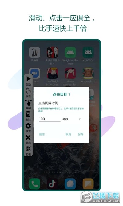 2、连点加速,自动执行;随时在任何位置记录点击或滑动操作,解放用户双手,实现连续点击加速,轻松设置点击频率、时间间隔。