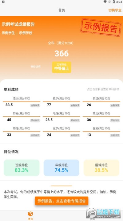 - 学业成绩总分在班级、学校以及区域所处位置;