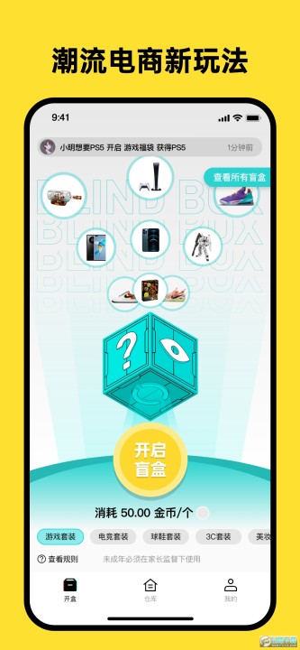 1、以盲盒为核心,基于AI算法的系统,游戏化沉浸式购物体验,让用户在游玩过程中获得丰厚礼品;