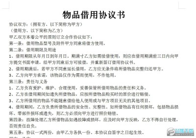 生活中偶尔遇到需要急用的东西,自己没有的话就要找朋友熟人借,如果是贵重物品最好还是和别人签订协议,那么物品借用需要注意什么呢?今天给大家带来物品借用协议书,内容条款比较详细,下载就可以用了!