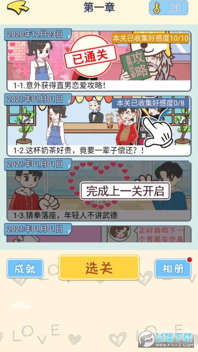 有趣的恋爱模拟游戏。《直男恋爱功略官方版》中玩家需要帮助直男来恋爱,面对不同的场景时间,开动你的脑筋,成功解决困境,提高好感度,精心设计的关卡,还有隐藏的彩蛋内容等你来发现,更多精彩赶快下载吧!