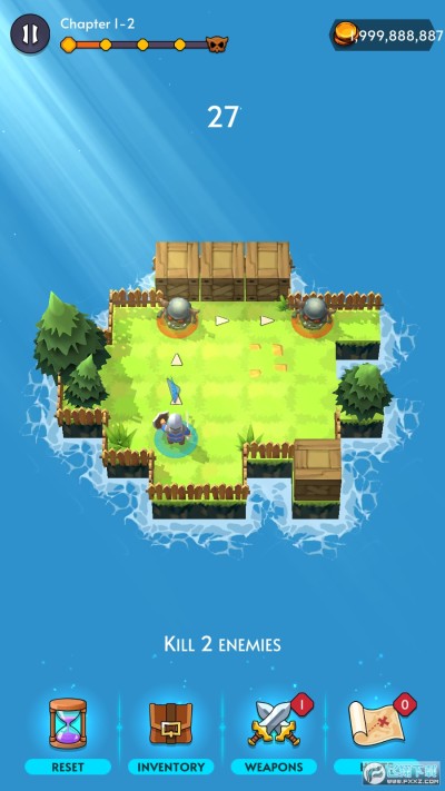 用最好的策略打败所有的怪物,记得抓紧时间,不要掉到海里。