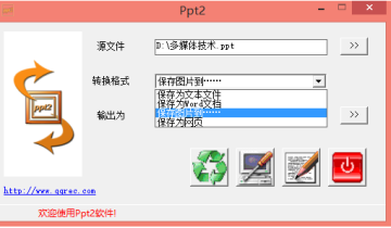 Ppt2是一款用于将powerpoint文件转换为其它格式文件的工具,可以将ppt、pptx文件转换为文本文件、word文档、批量图片、网页文件。