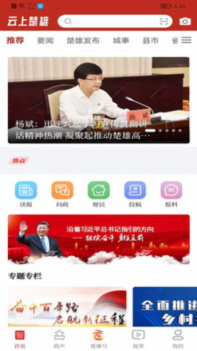 1.基层舆论引导的“好帮手”“云上楚雄”APP作为楚雄州权威信息发布平台,担负着宣传群众、引导群众、服务群众的重要职责。充分利用互联网技术,整合主流媒体、权威部门供稿、自媒体等信息资源,构建现代传播体系,落实意识形态责任制,将党的声音准确及时传递给群众,做基层舆论引导的“好帮手”。