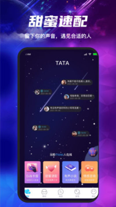 塔塔声吧是一款多元化的移动社交应用。搭建了如酒吧、声音演播厅、开黑语音室等多种沉浸式社交场景,开启了新生代新的线上生活交友方式。