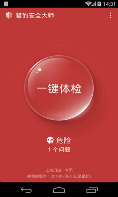 猎豹安全大师是一款功能非常强大的手机安全软件,其内置了AV-TEST全球第一的杀毒引擎,扫描速度快,杀毒效果全面,可以帮助用户躲避恶意病毒、木马和广告的骚扰,是大家手机中必备的安全卫士!