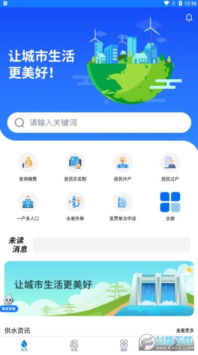 集业务与服务于一体,提供包括账户管理、查询缴费、居民过户、居民实名制登记、故障报修、营业厅查询、供水资讯等自来水服务,内嵌智能在线客服,让您足不出户便可享受快捷、安心的服务。