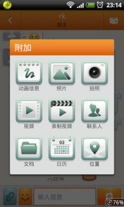 - 1对1聊天,群聊天,广播,动态信息,图片,视频,音频,联系方式,日历.