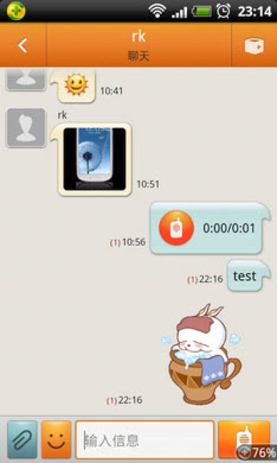 (1)ChatON支持多个平台和设备,用户可以使用它自由与友人聊天.