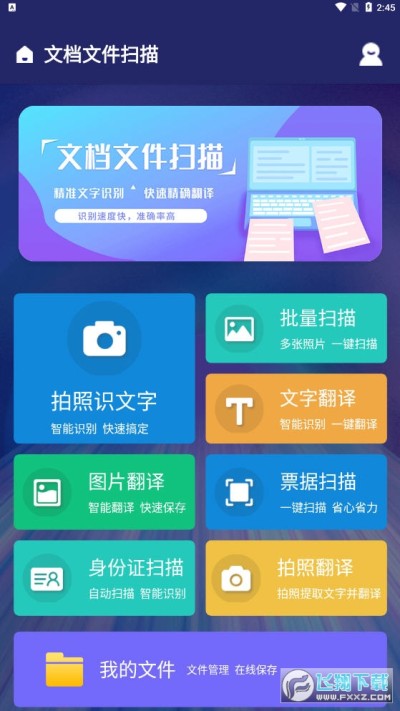 文档文件扫描软件是一款手机扫描软件,这款软件主要是针对文档文件扫描,在这款软件中用户可以直接拍照就能识别图片等等,也能直接提取文字,在文档文件扫描软件上支持文字翻译,功能很齐全,需要的快来试试吧!