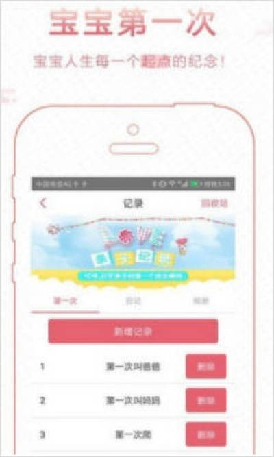 1、家长可以在这里记录孩子的每一个起点,纪念宝宝的第一次