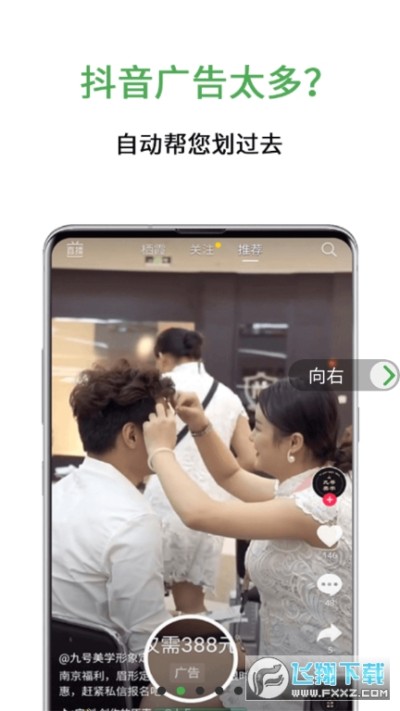 「短视频广告划过」刷几条短视频就有广告出现?就有直播出现?用「绿去广告」吧,抖音短视频广告自动滑过,滑过直播,还你干净上网环境。