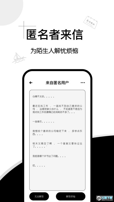1、匿名者来信为陌生人解忧烦恼,有专门为各位用户进行解答让可以享受到优质的服务。