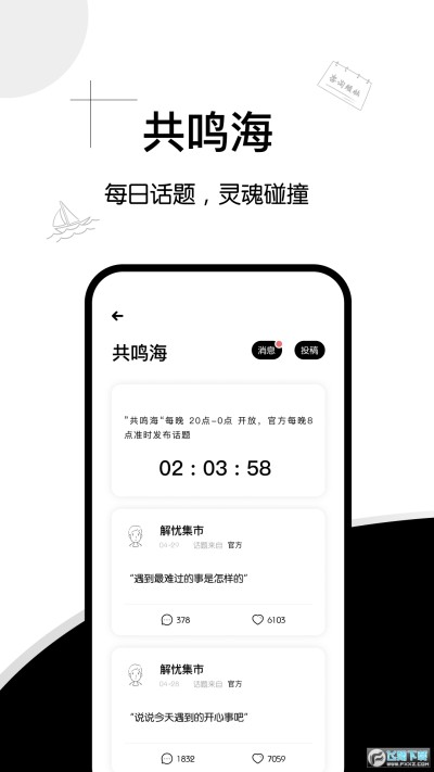 3、共鸣海每日话题,灵魂的碰撞可以将自己喜欢的话题打出来总有志同道合的小伙伴认同你。