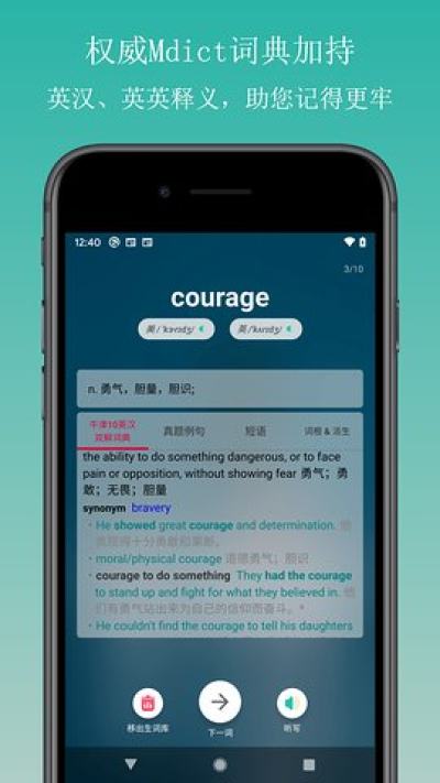 「高效背单词app - 支持英、法、日语」极简UI设计, 让您全身心的沉浸在学单词的氛围中;英语四、六级、考研、专四、专八、雅思、托福、高中、初中等高频词单词本全覆盖, 包含红宝书考研英语词汇; 英语四、六级、考研、高考等真题例句, 同根词、派生词、短语一并学习, 让您全面学习词汇;