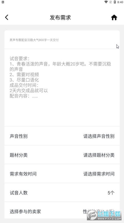 【发布需求】无需等待,发布需求,配音员主动提交试音。