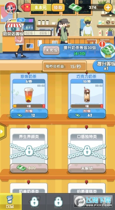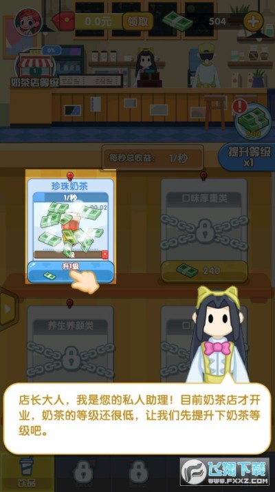 2、完成任务获得资金升级自己的店铺,雇佣更多的员工,将你的奶茶店规模扩大。