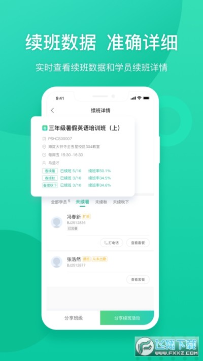 手机实时查看学生续班情况,续班明细实时更新。
