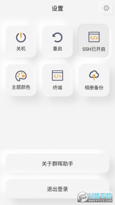 操作群晖关机、重启、开启/关闭SSH、设置APP主题颜色(亮色/暗色/跟随系统)、终端、相册备份(未完成) 点击【控制台】左上角按钮,可查看主菜单,目前支持以下功能/套件。