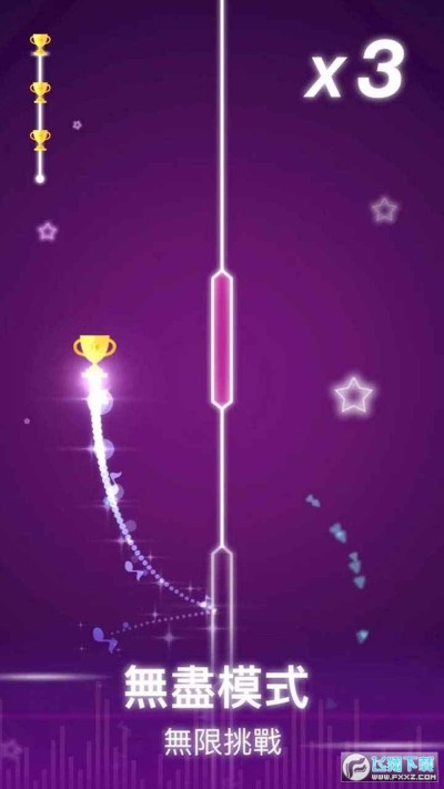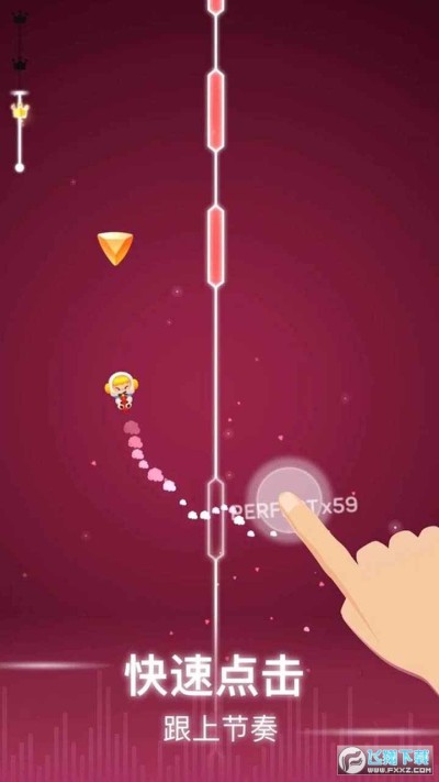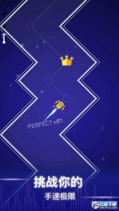 感受音乐的节奏点,轻击屏幕操作光点的移动轨迹。踩准节奏点, 努力获得更多的分数和钻石吧!舞动手指,来体验最强节奏感带来的刺激吧!