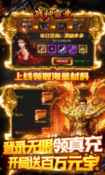 战神霸业H5是款还原经典传奇大型arpg挂机类手游。 经典传奇,回味无穷!上线送vip15、100w元宝,绝版特效动态武圣时装!更送绝版极品神装,一刀999,元宝遍地爆!每日登录畅领无限真充卡,轻轻松松做土豪!BOSS无限爆元宝、真充卡、极品道具装备,应有尽有!超变态无敌资源千倍返利,全新珍宝阁一折购!最强福利传奇,邀你来战!