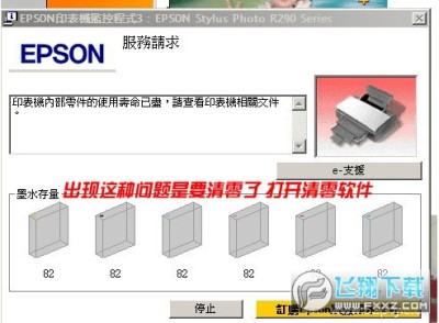 二、什么时候用清零软件?当打印的时候,电脑出现下列问题提示内容,打印机上的指示灯开始交替闪烁了、就是需要给打印机清零了。
