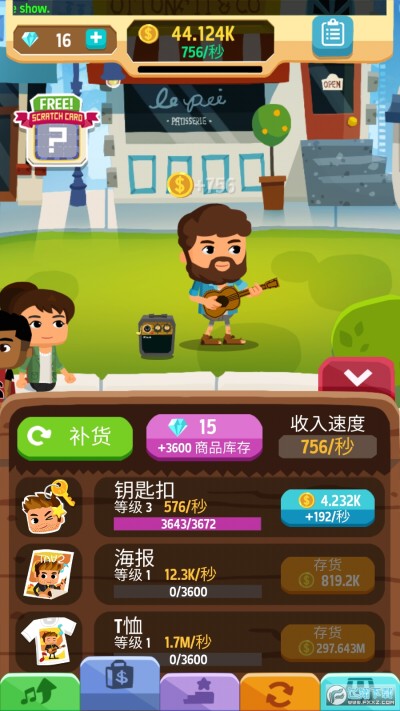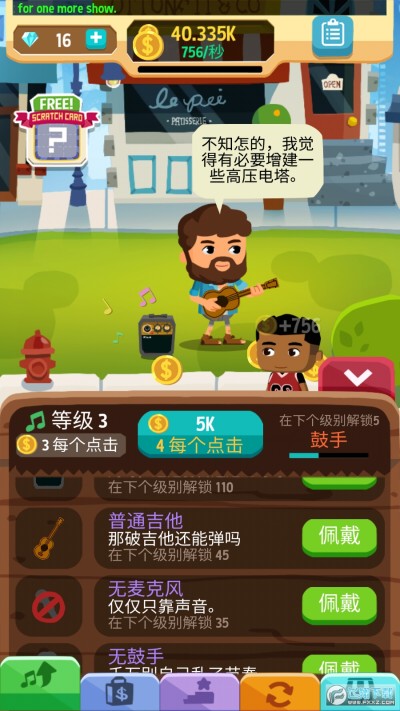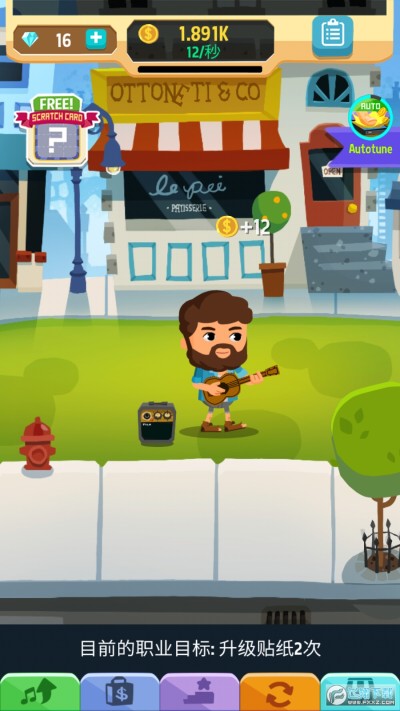 流行巨星点击英雄修改版最新版是一款卡通风格的经营养成类手游,游戏里玩家需要成为一名摇滚歌手在游戏里白手起家,在街边唱歌不断赚取金币,使用金币来升级自己的音乐设备吸引粉丝,售卖自己的周边产品,一步步的成为国际巨星!