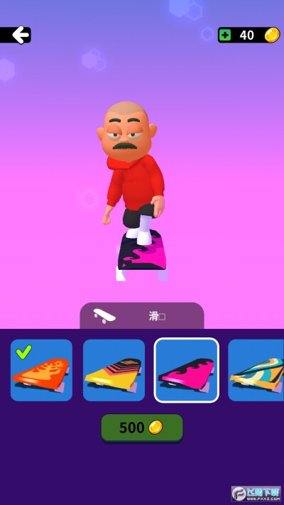 向左或向右轻扫可以捡起滑板,爬得更高可以越过障碍物。用你的滑板做一个甜蜜的跳跃,收集硬币!