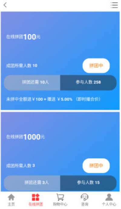 2、拼团购物可以得到更多的优惠,团购更加实惠;