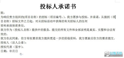招投标由于其公平,公正,公开的特征,参与投标的人需要对项目绝对保密,还需要签订承诺书,今天飞翔小编为大家带来投标人承诺书,承担保密责任!投标人承诺书doc文档可以直接下载使用!