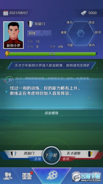 3,卡通风格的足球发展的游戏,完成你的目标,招募球员,不断提高在各方面的能力,带领团队成为世界上最好的球队。