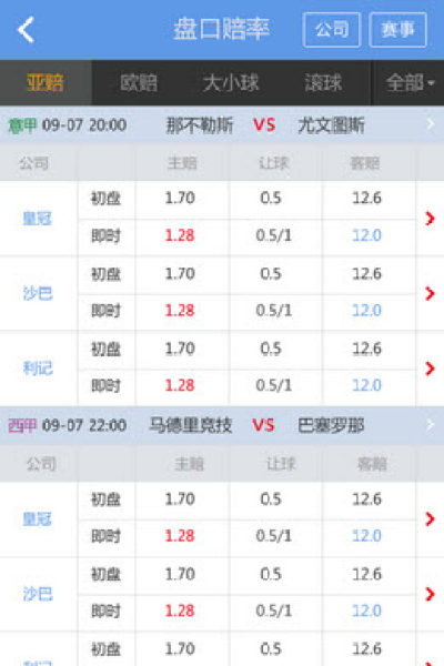 【及时盘口】百家亚赔、欧赔公司的及时动态盘口数据,是你购买足彩的一款动态数据必备软件。