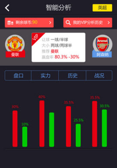 【智能分析】独一无二的智能分析技术,基于欧洲权威数据供应商提供的大数据,通过业内顶尖的数据分析团队科学严谨的精确计算,得出有关比赛的各项数据比率;