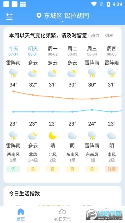 4、晴天雨天各项综合指数都能一目了然,可以根据天气变化提前安排户外活动。