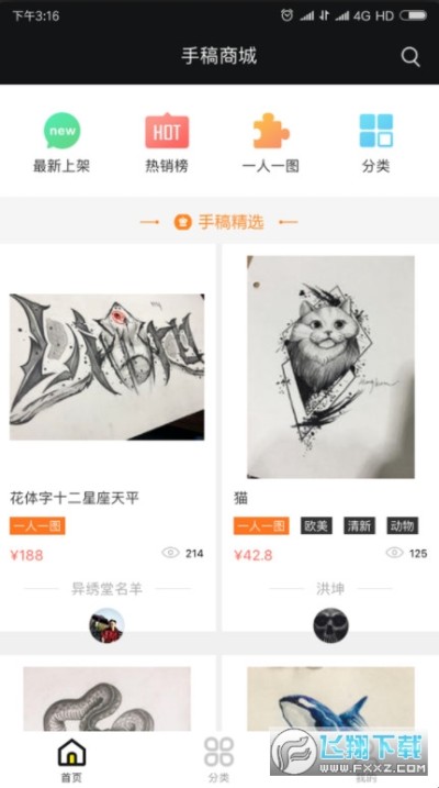 有绘画功底的纹身师,每月只需发布一些原创手稿,便可获得非常可观的额外收入,欢迎优秀纹身师入驻。