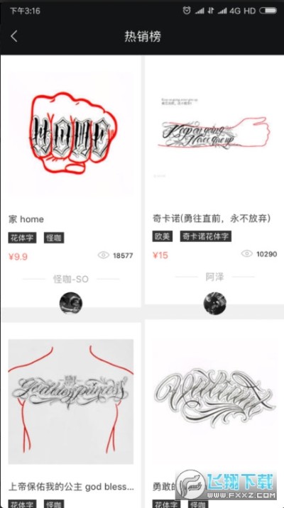 一键搜索自己需要的纹身手稿,欣赏和下载;
