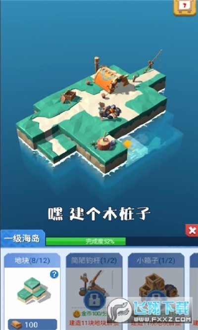 2.玩家需要达到不同的木材,材料要求才能扩张小岛,搭建房屋,小船。