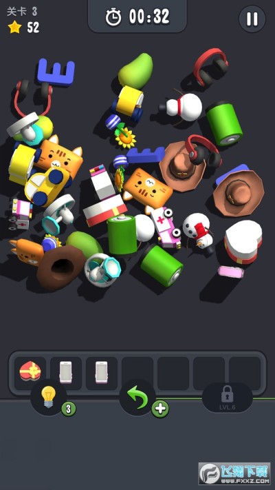 连续点击相同的三个物品即可消除,注意要连续噢,填满屏幕下方的空格就挑战失败了,连续点击三个相同物品才可以,考验眼力和脑力的时候到啦!游戏轻松有趣,但也不容小觑噢!