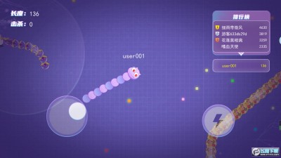 3、游戏玩法类似于蛇,玩家需要操纵自己的蛇来玩游戏,不断吃吃吃豆子来使自己的身体越来越大;