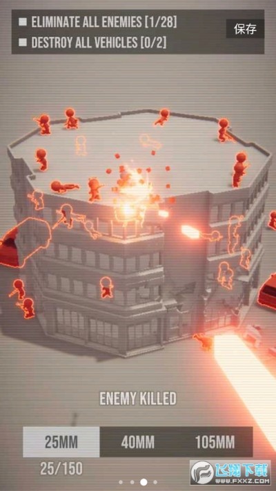 3.灵活的控制射击的方向,命中道具获得分裂技能,消除更多建筑物