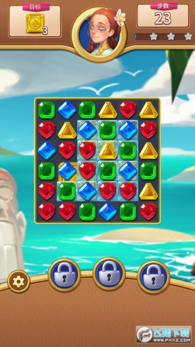 3、你可以通过依次点击相邻的图案并尝试让他们换位置,满足消除的条件轻松的清除其中宝石。