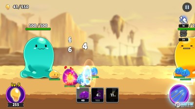 游戏画风横版卡通,在SLAWARS游戏之中玩家们需要控制史莱姆,开始参加到世界大战之中,依靠自己的技术,成功的取得胜利。