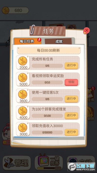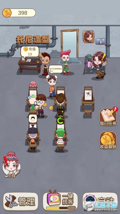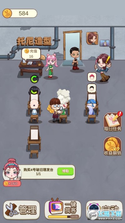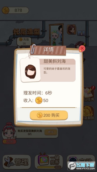 2、玩法简单,玩家要做的就是花钱购买各种必备的装饰和工具,然后就可以开始接待客人理发,赚取金钱,解锁更好的工具和聘用更好的理发师;