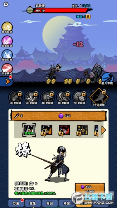 3、十几种不同类型的刀法可以学习,刀法学习后会自动释放,并且还有强力的斩杀绝技。