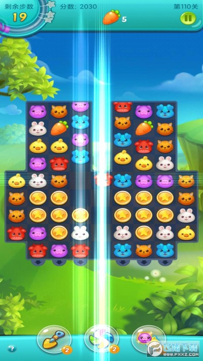 a、一次性完成一定数量的消除会生成一些特殊的动物,有的可以从横消除,有的是直接炸开一片;