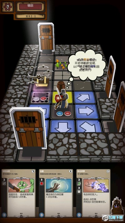游戏开始,玩家会有3张卡牌,可以攻击或者移动,但是每个回合只能使用一张卡牌。