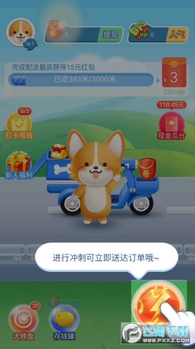 《我要赚外快红包版》是一款可以赚钱的手机游戏。这款赚钱游戏加入了趣味的玩法,以送外卖为题材,玩家在游戏中完成外卖订单,冲刺的路程越多获得的奖励就越丰厚!想要赚钱的小伙伴们赶紧下载体验吧!