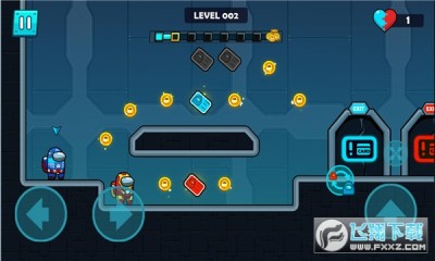 小红和小蓝是太空飞船上两个冒名顶替的特工,他们的任务完成了,他们需要迅速逃离这艘飞船。对于冒名顶替的间谍来说,逃脱并不容易,他们需要你的帮助。使用屏幕上的箭头键移动小红和小蓝,将他们带到大门。
