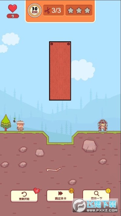 用手指一画切掉木块,让切掉的木块搭成桥梁,让主角动起来顺利过去解救宝贝。